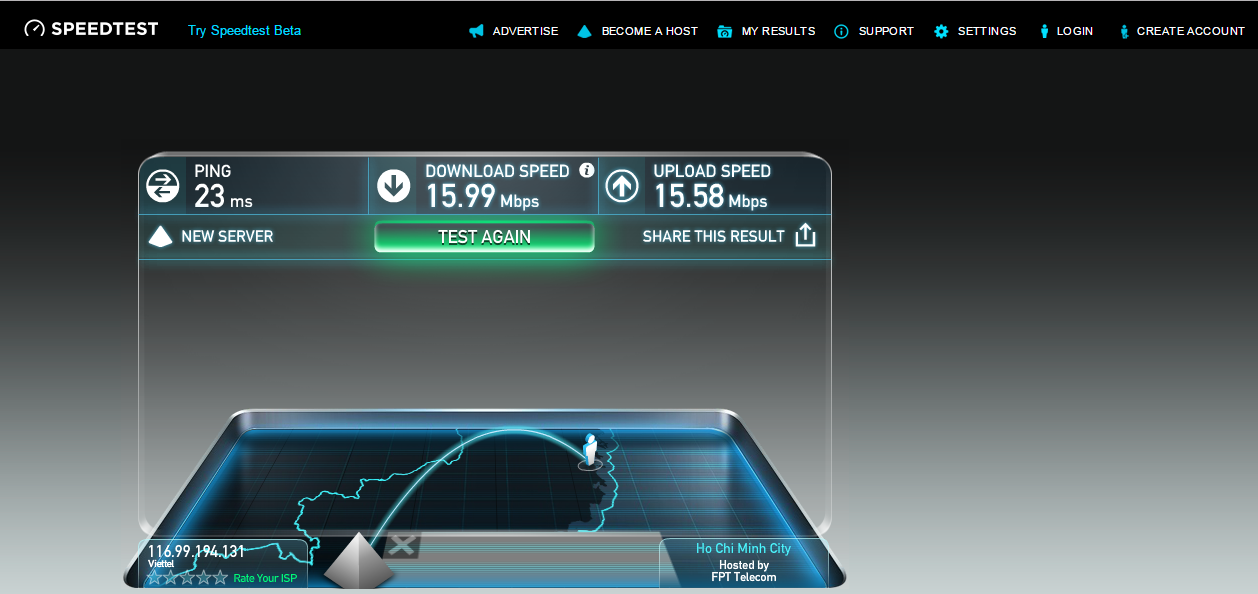 Như vậy chúng tôi đã hướng dẫn các bạn cách Test tốc độ mạng Internet cho mọi nhà cung cấp mạng FPT, VNPT, Viettel, CMC,… Cũng như cách đọc các thông số kiểm tra mạng từ trang web Speedtest.net. Bạn có thể chia sẻ thông số mạng của bạn, ý kiến thắc mắc bằng cách Comment dưới bài viết.